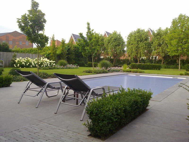 AanlegEen mooie tuin aangelegd bij een nieuwbouwhuis in Sint-Oedenrode. In deze tuin zijn vele facetten van ons werk aan bod gekomen. Aanleg van de vijver, bestrating van oprit en terrassen, plaatsen van tuinafscheiding, aanleg van elektriciteit en water t.b.v. het zwembad en verlichting, leggen van graszoden en planten van bomen, hagen en kleine planten.
